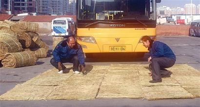 公交集團(tuán)燃料經(jīng)營分公司經(jīng)理黃杰說,為確保冰雪天氣里公交正常運(yùn)行,集團(tuán)每年舉行各類防滑演練,今年更是“返璞歸真”,從郊區(qū)市采購了一萬多條草墊子分發(fā)各路隊(duì),這些草墊都是為防止車輪打滑而特制的。
