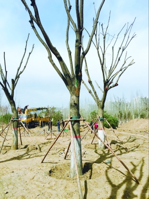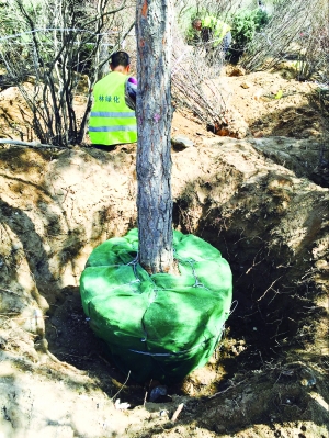 據(jù)劉義龍介紹,目前移栽的樹木基本上是以國(guó)槐、樟子松、丁香為主。以國(guó)槐為例,一棵直徑25~35公分的,市場(chǎng)價(jià)在1.5萬(wàn)元左右。而它的移栽成本包括挖掘、修剪、運(yùn)輸、栽植在1000元左右。整個(gè)移栽過程,由專業(yè)人員現(xiàn)場(chǎng)指導(dǎo)。劉義龍說,為了確保樹木成活,他們將樹挖出來后,會(huì)用草繩將樹根保護(hù)起來,用吊車吊起,然后移到新址,換上新土,澆上足夠的水,搭建支架,避免樹木被風(fēng)吹搖晃過大,樹根不穩(wěn),影響成活。樹木栽好后,會(huì)請(qǐng)綠化專業(yè)人員進(jìn)行跟蹤養(yǎng)護(hù)。